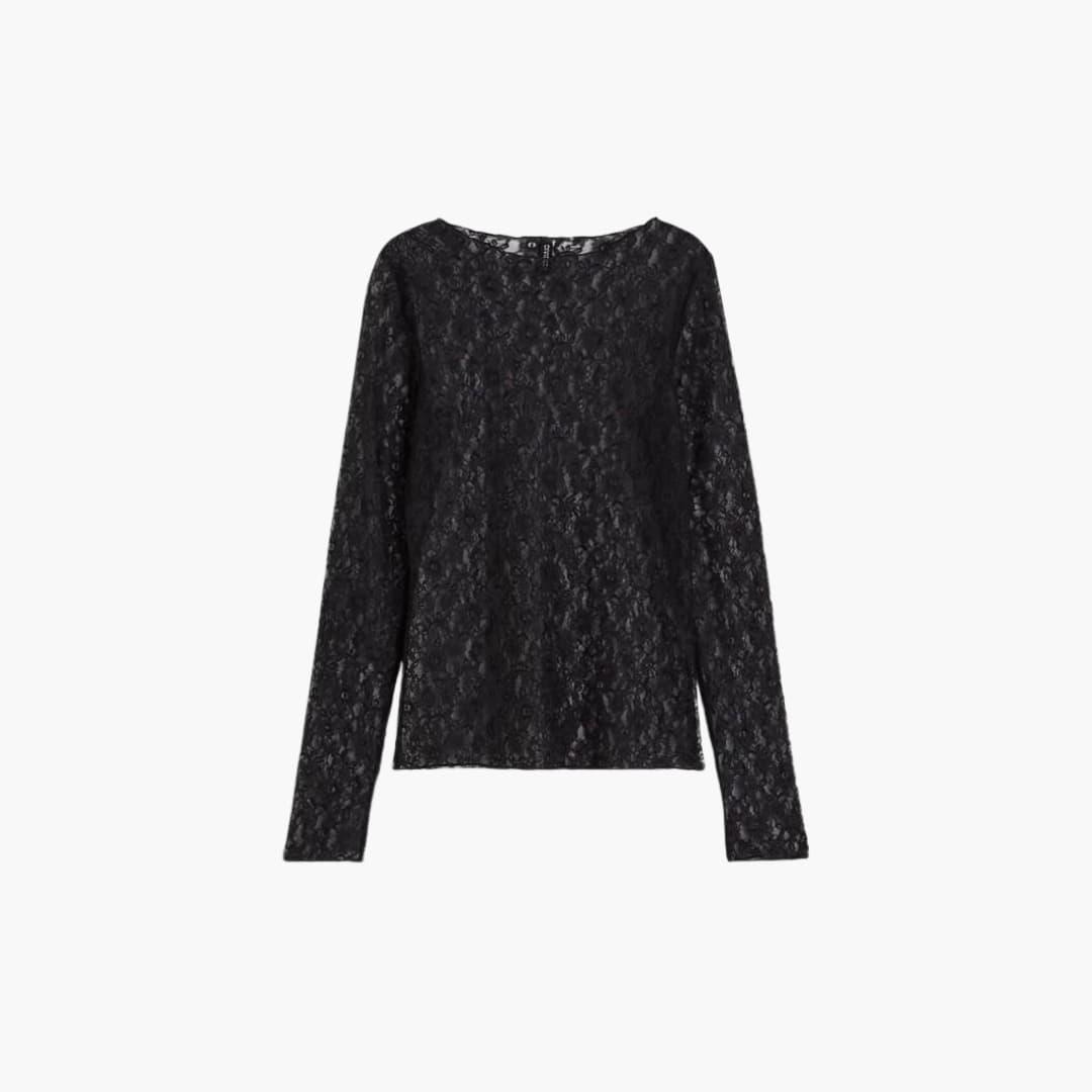 Women's Blouse with Sheer Lace Design and Long Sleeves