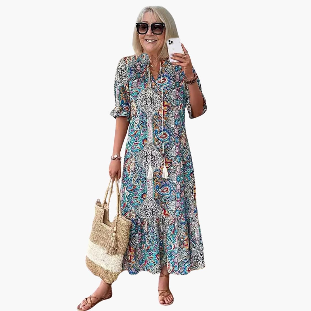 Women's Bohemian Dress with Flowy Design and V-Neckline