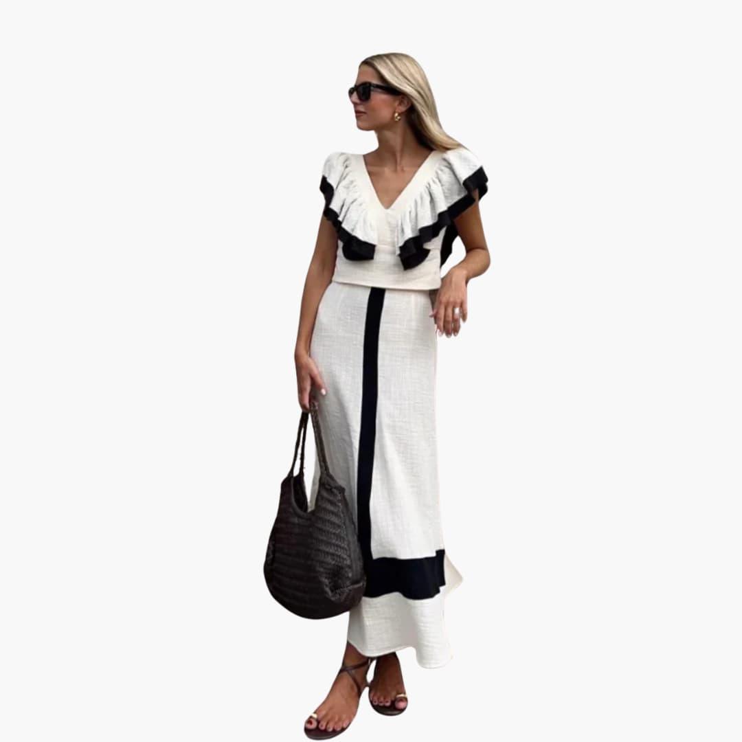 Women's Co-Ord Skirt Set with Ruffled Top and High-Waisted Skirt