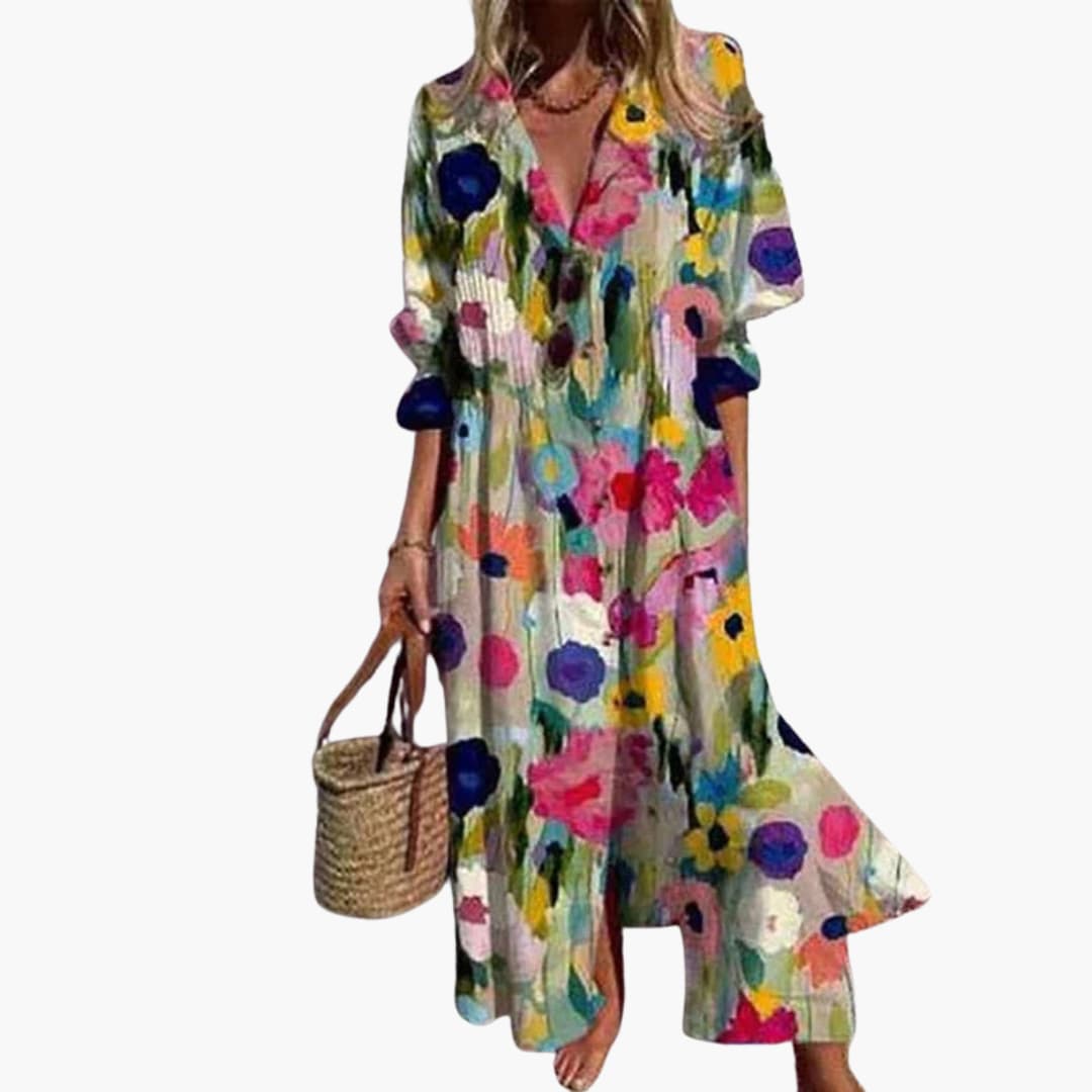 Women’s V-Neck Long Sleeve Ankle-Length Dress