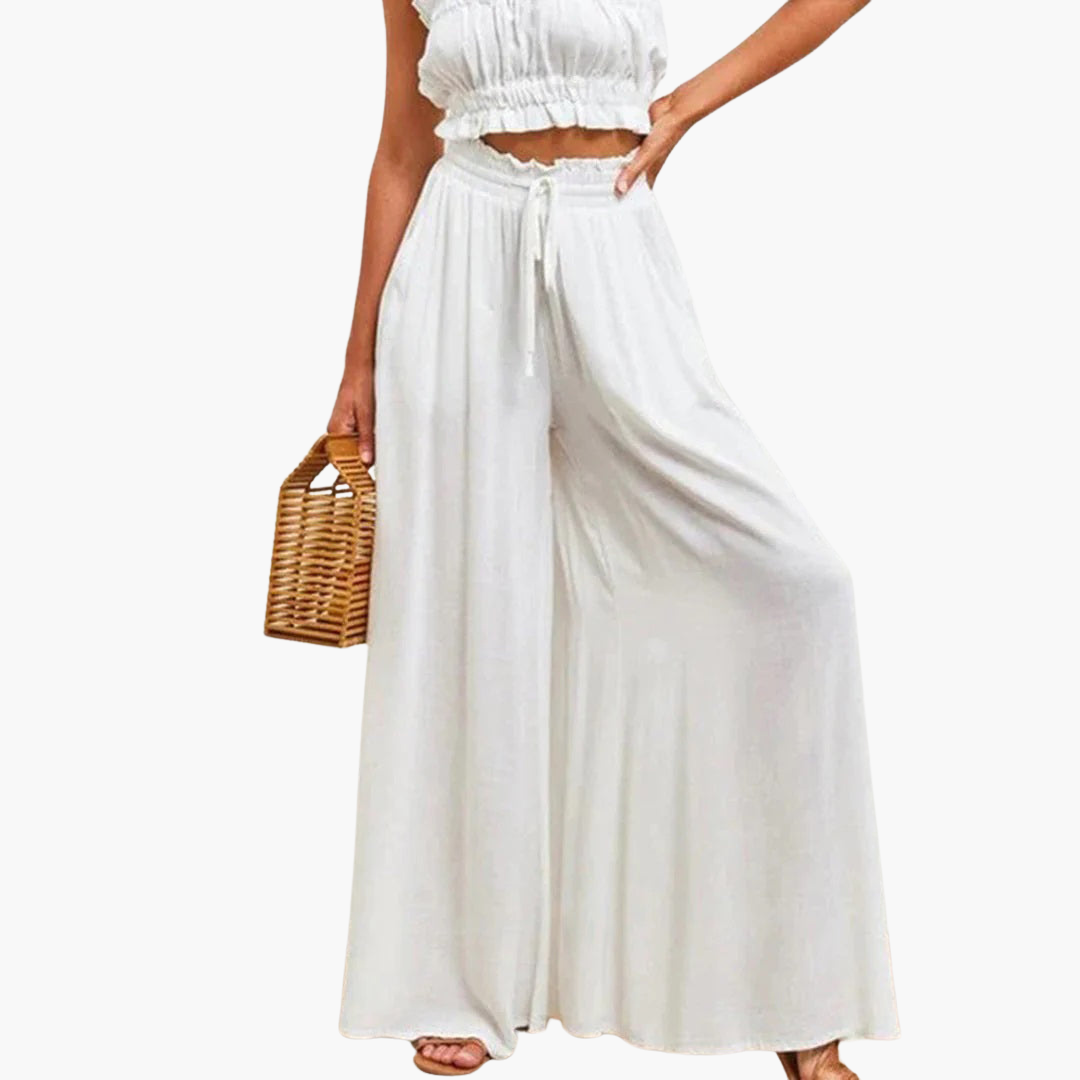 Women’s V-Neck Two-Piece Set with Wide-Leg Trousers