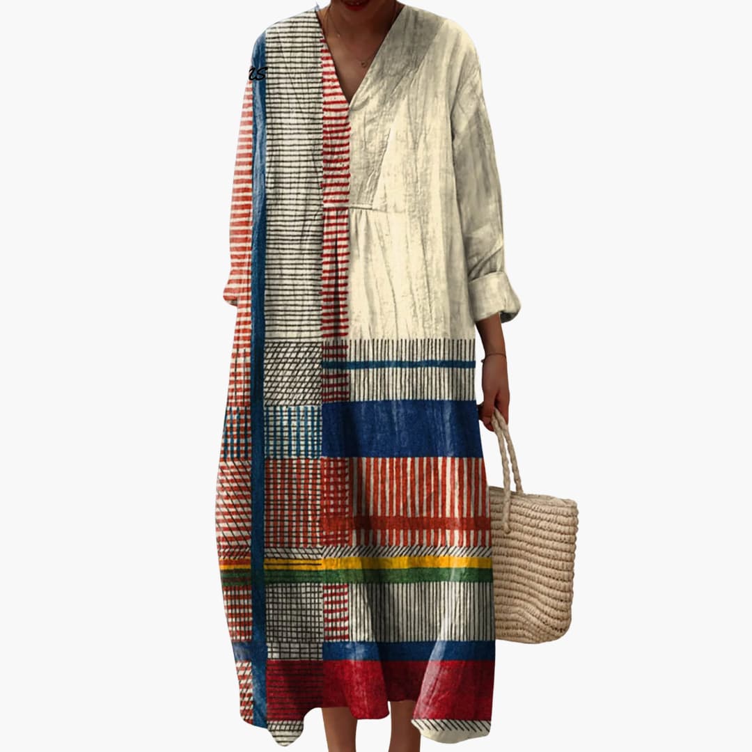 Women's Maxi Dress with Multicolour Patchwork and Long Sleeves