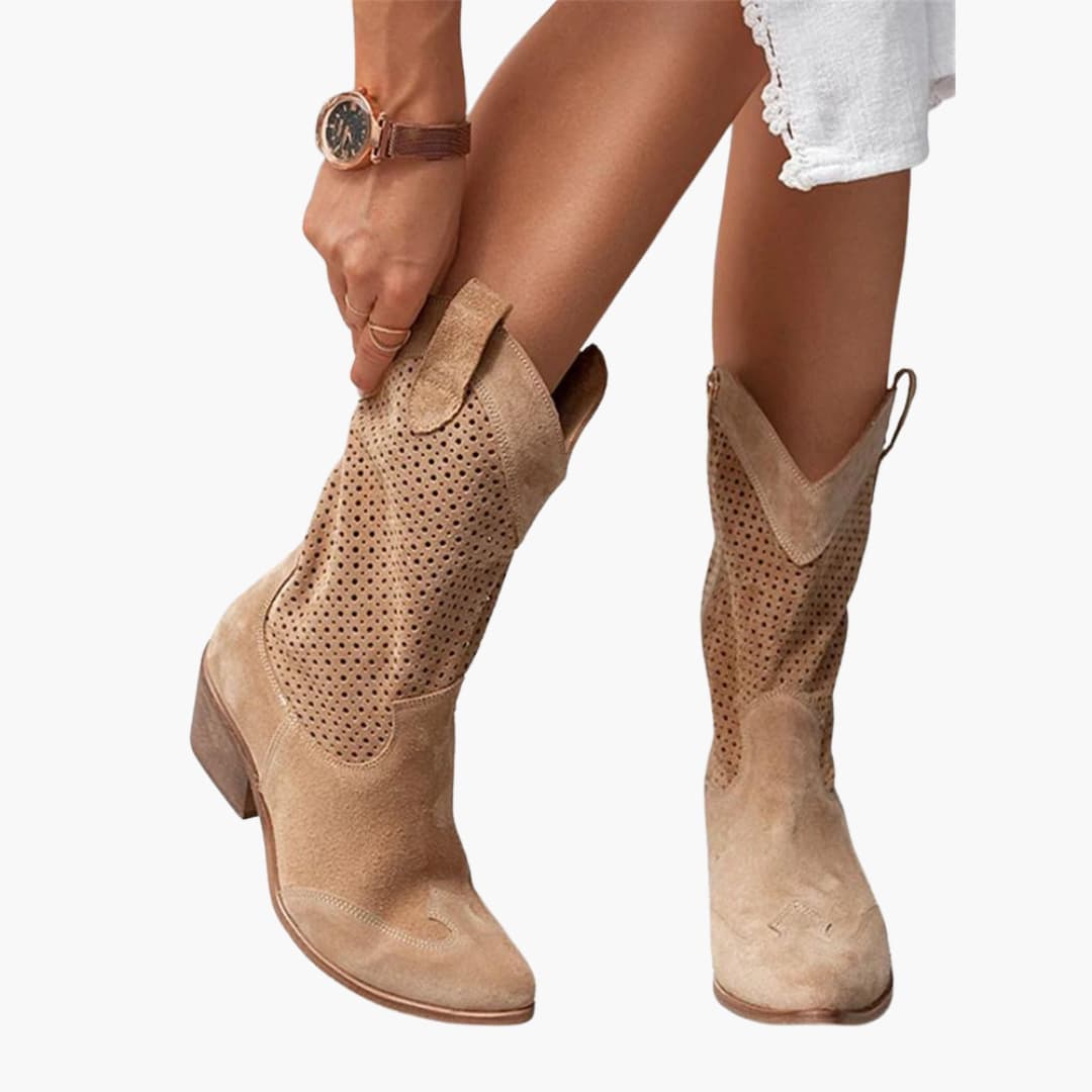 Women's mid-calf boots with perforated upper and side zip closure for easy wear