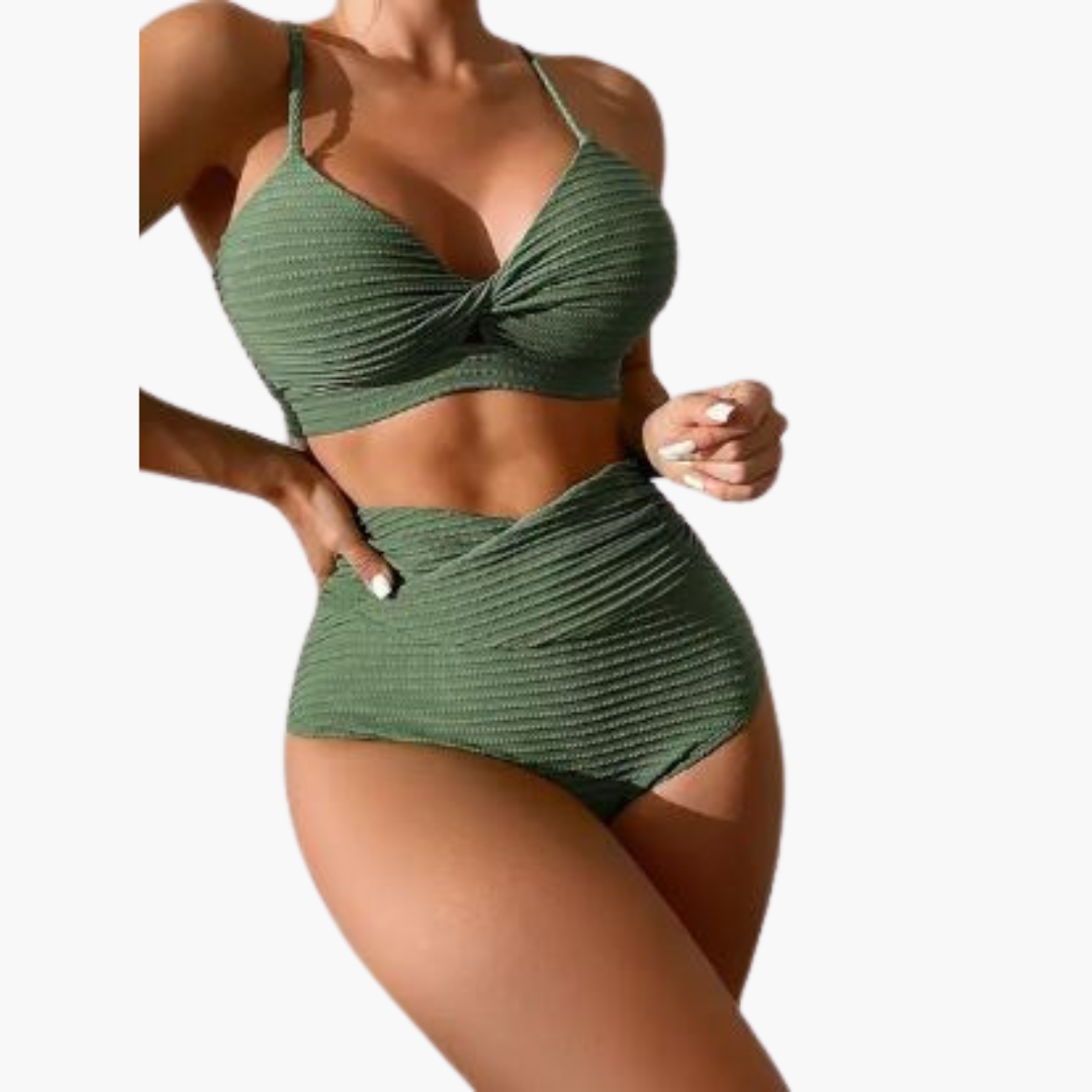 Women’s Bikini Set with High - Waisted Bottoms and Ruched Detailing