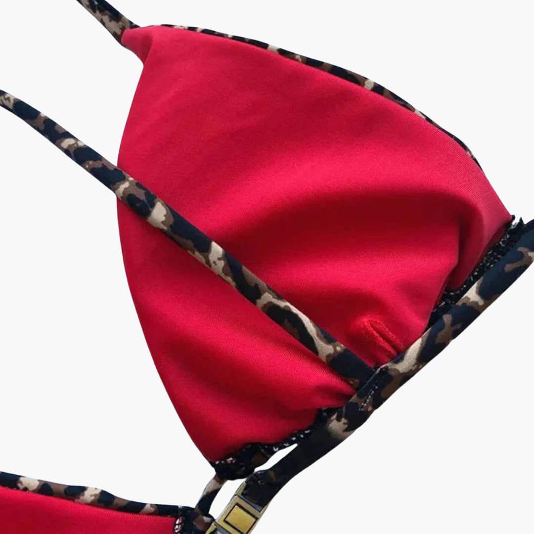 Women’s two - piece swimsuit featuring leopard print and a textured surface