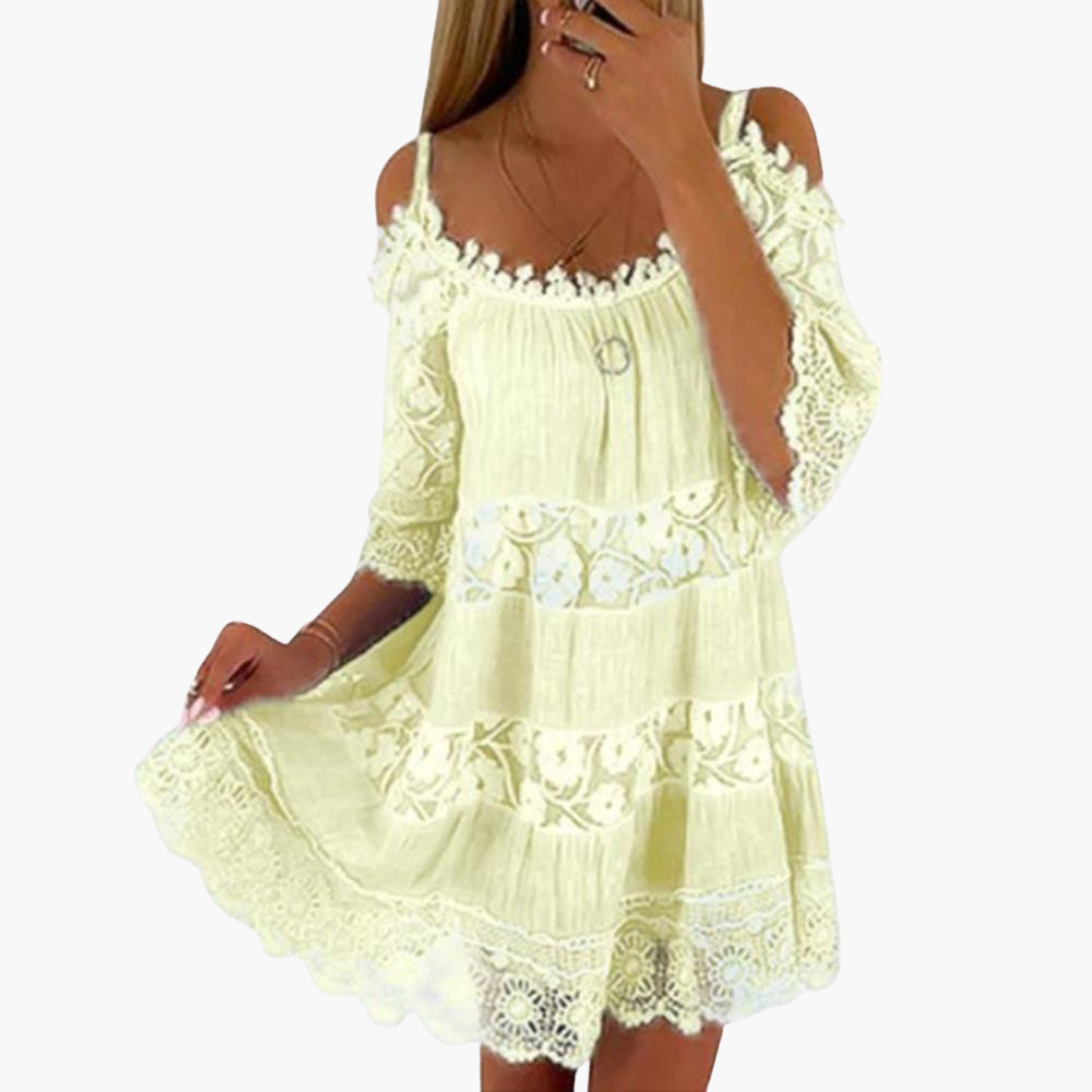 Women’s Cold Shoulder Dress with Lace Details and Fit for Summer