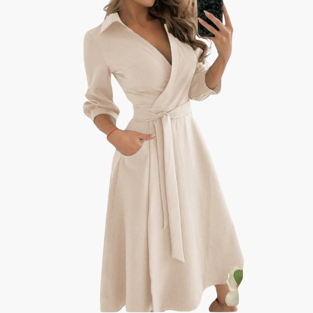 Women’s Midi Dress with Wrap and Self-Tie Waist