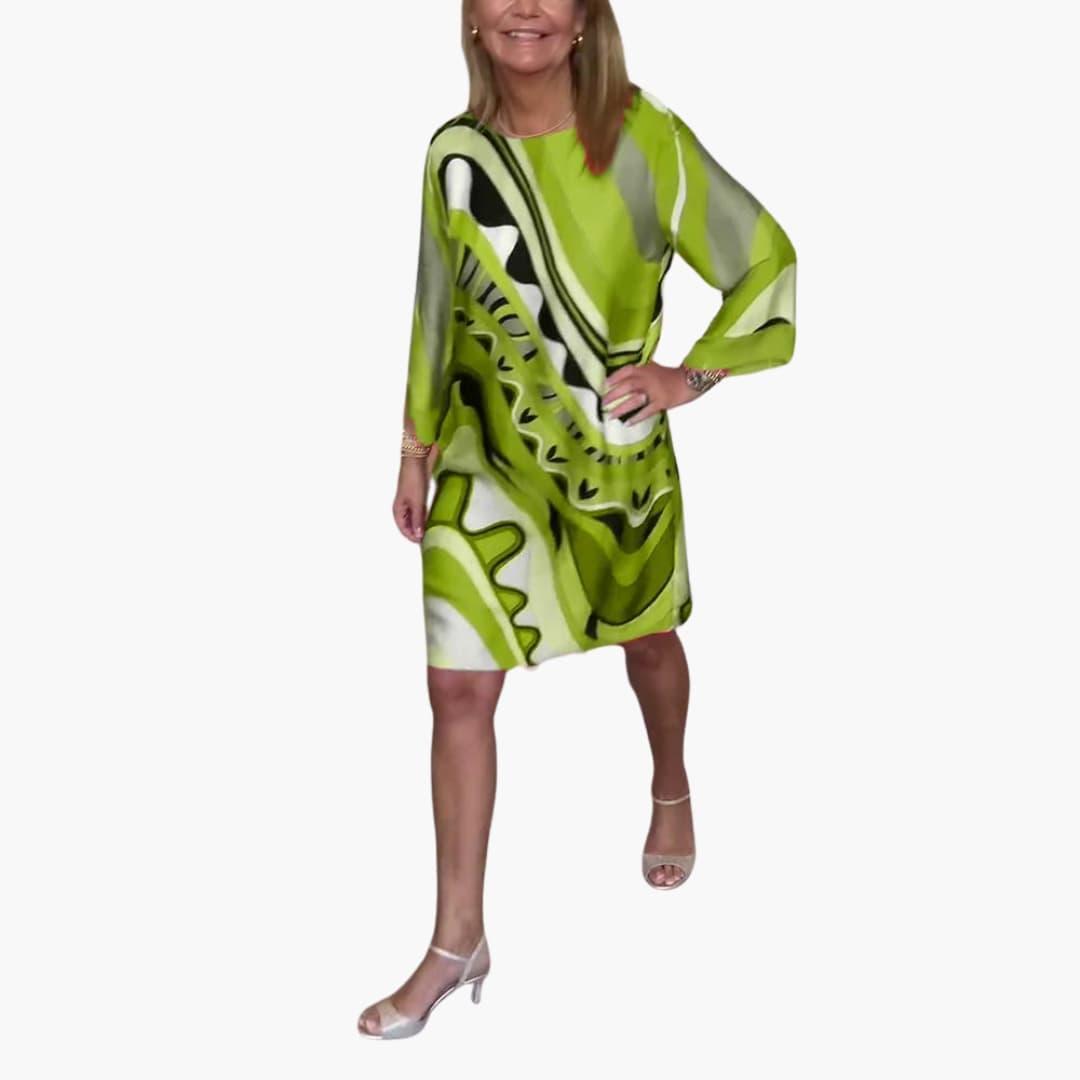 Women's printed midi dress with bell sleeves and a V-neck for casual and semi-formal occasions