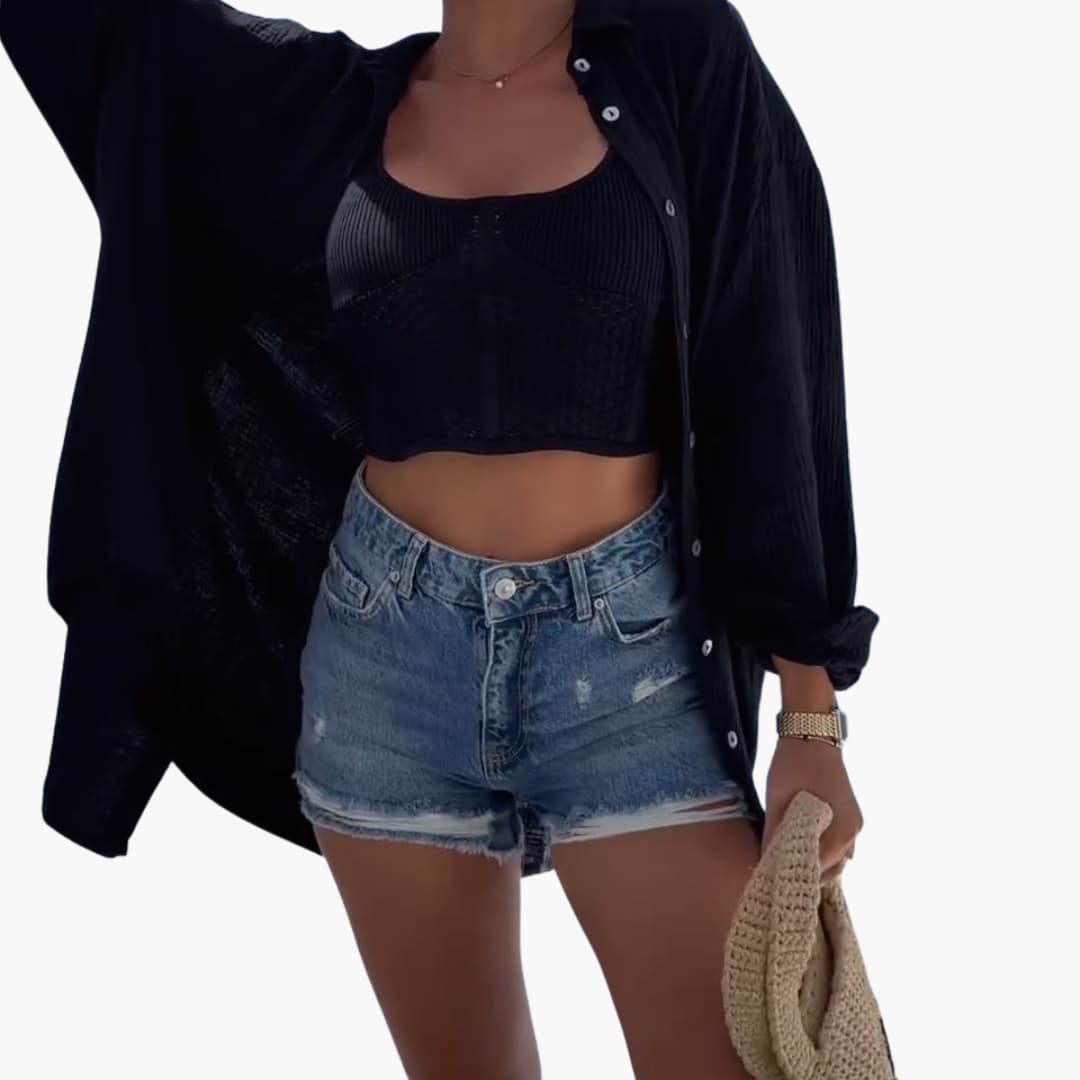 Women’s Oversized Beach Shirt with Collar and Embroidery