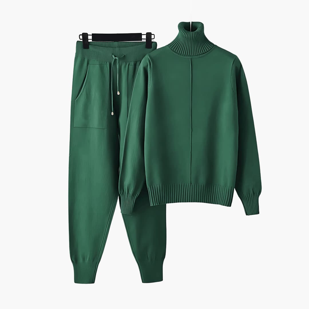 Women's Turtleneck Jumper Set with Relaxed Fit and Wide-Leg Trousers