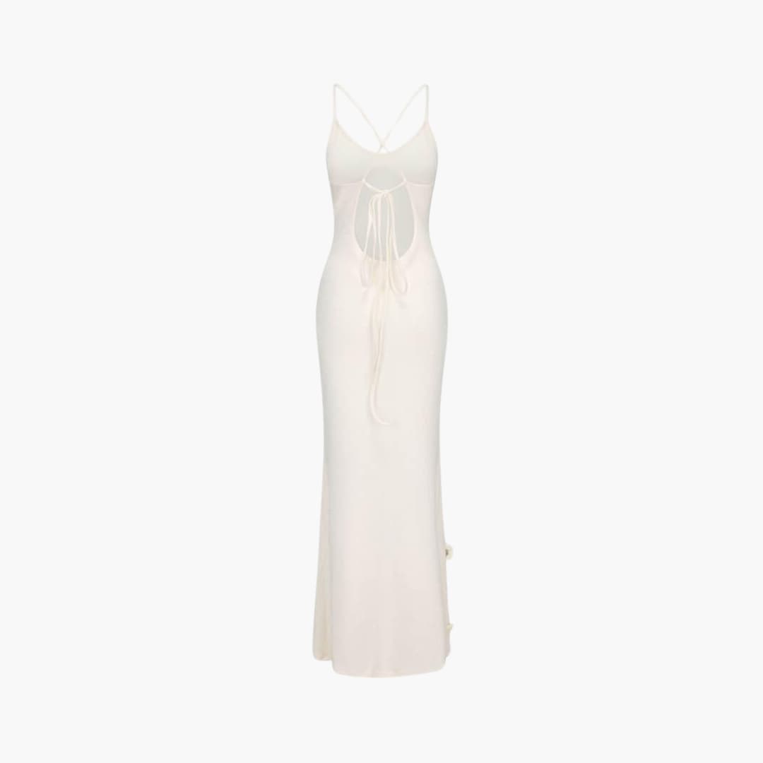 Women’s strappy maxi dress with low neckline and long skirt