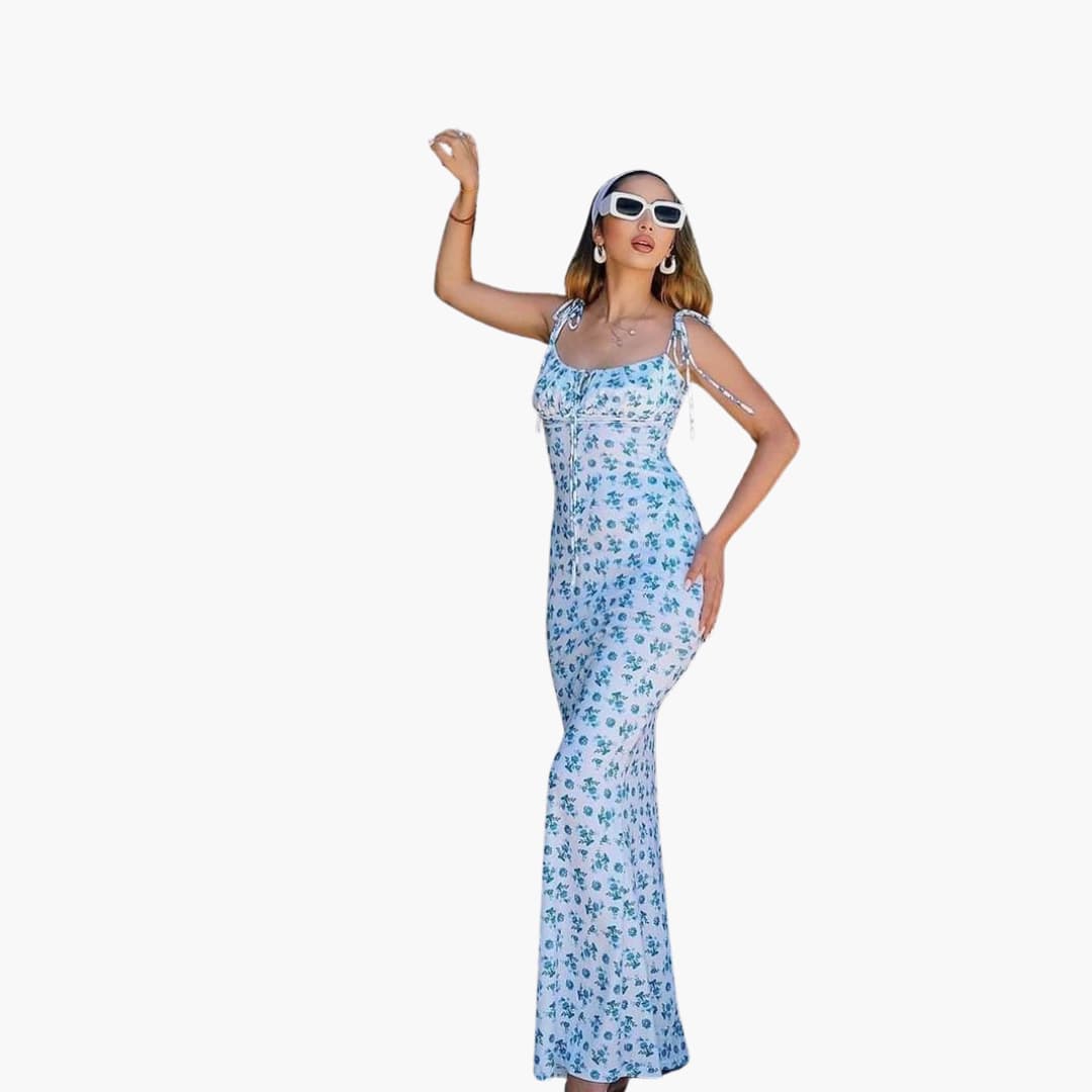 Women’s Maxi Dress with Sleeveless Design and Floral Print