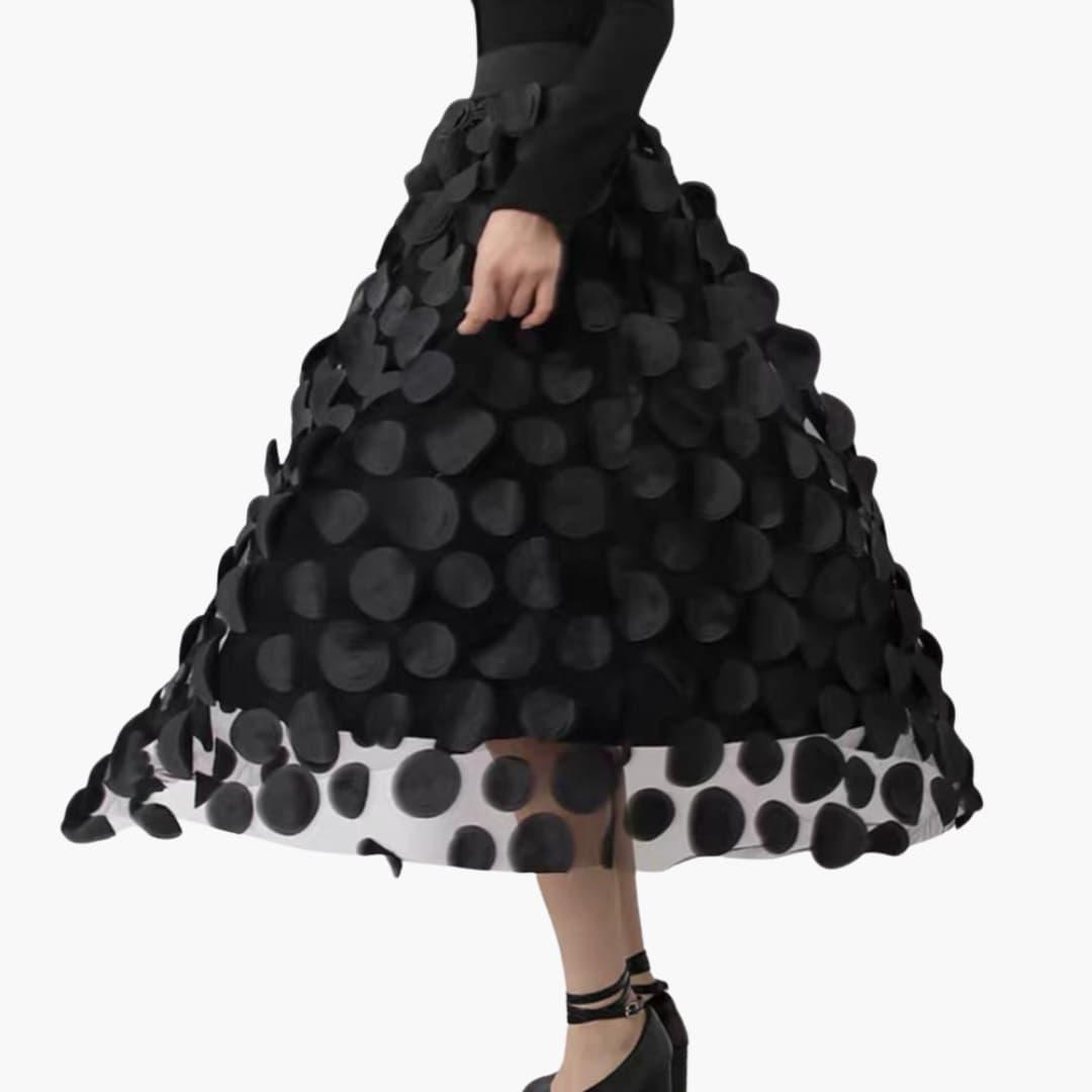 Elegant high-waisted maxi skirt with pleated details and flowing design, perfect for formal or semi-formal occasions.