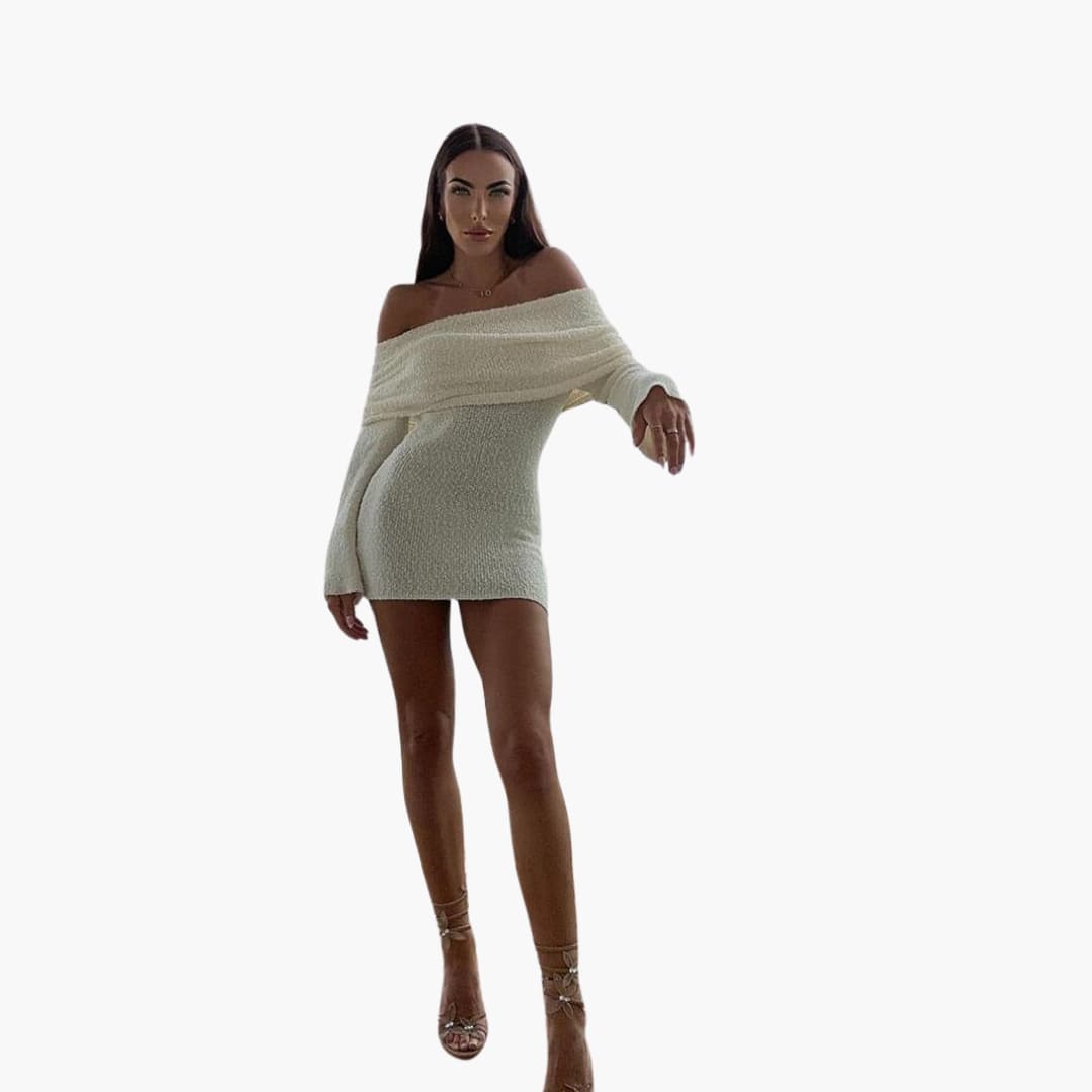 - Sleeveless Design: Features a sleeveless, off-the-shoulder cut for a contemporary style.