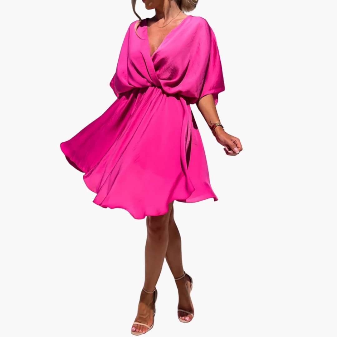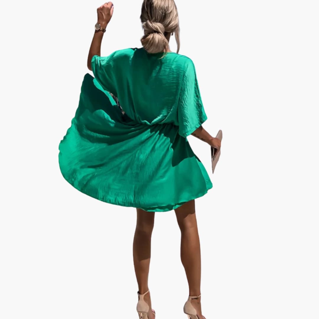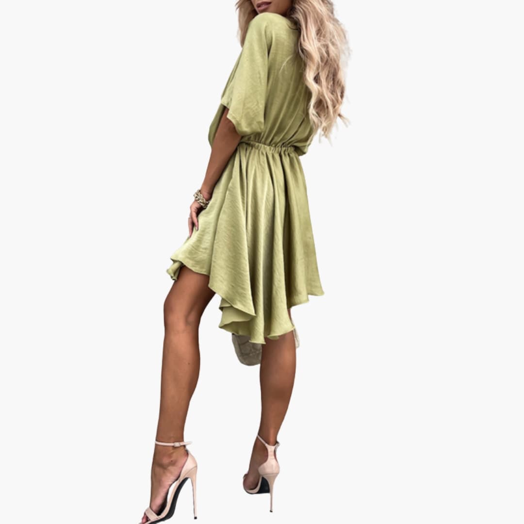 This summer dress features a high waist design and a flowing fit, ideal for warm weather. The fabric ensures comfort while the relaxed silhouette allows ease of movement. Perfect for casual outings or relaxed strolls.