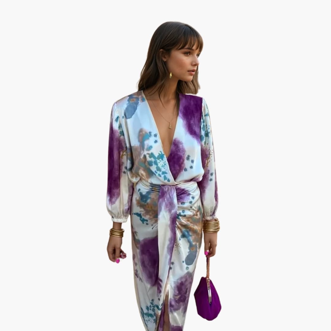 • Pleated Sleeves: Sculptural pleated sleeves enhance the dress's overall structure.
