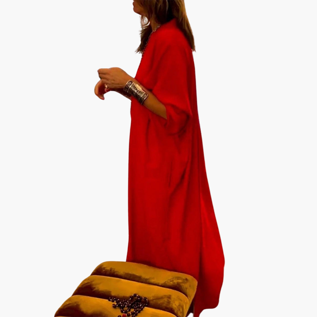 Women’s maxi dress with a flattering fit flowing silhouette and V-neck