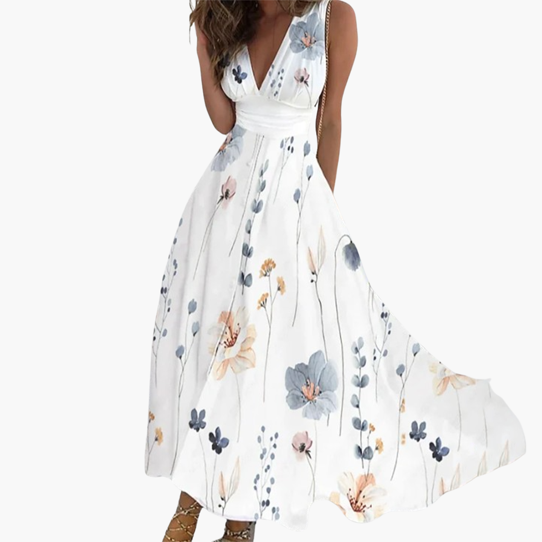 Women’s Floral Maxi Dress with V-Neck and Flowing Fit for Summer Occasions