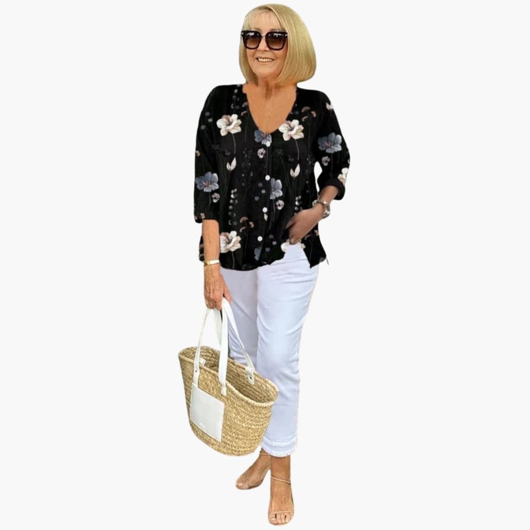 Women's Blouse with V-Neck and Three-Quarter Sleeves