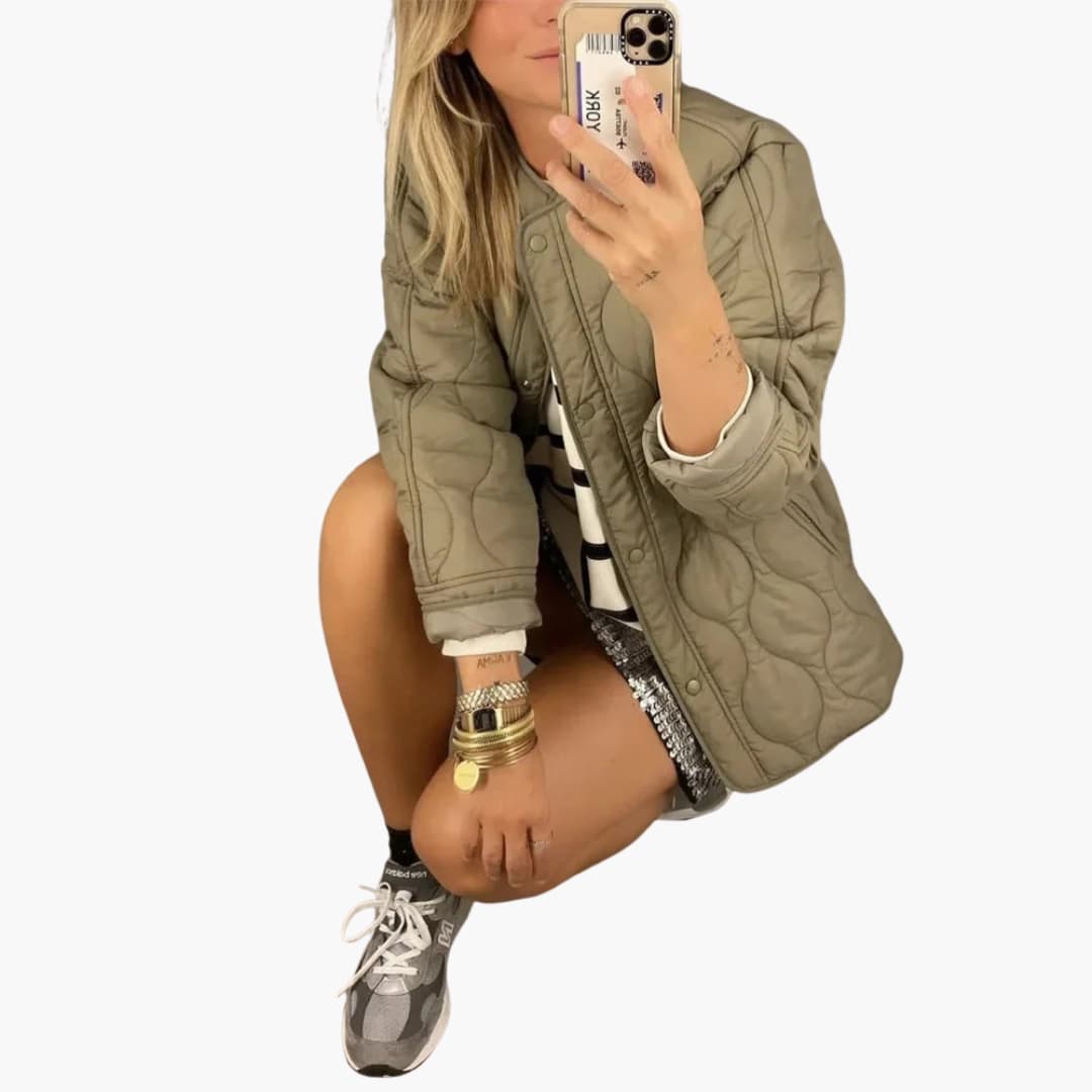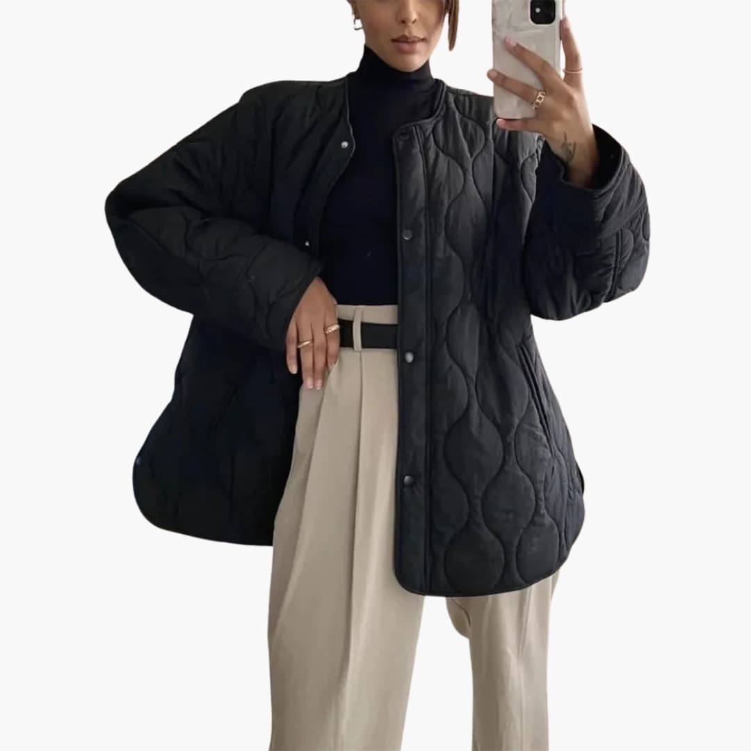 Women’s Winter Puffer Jacket with Snap-Button Closure and Quilted Padding for Warmth