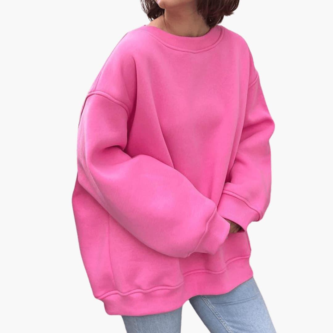 This women’s sweatshirt features a classic crew neck, long sleeves, and a relaxed, oversized fit. The fabric is designed for year-round wear, making it a versatile addition to any casual wardrobe. Its timeless design is perfect for layering or wearing on its own.
