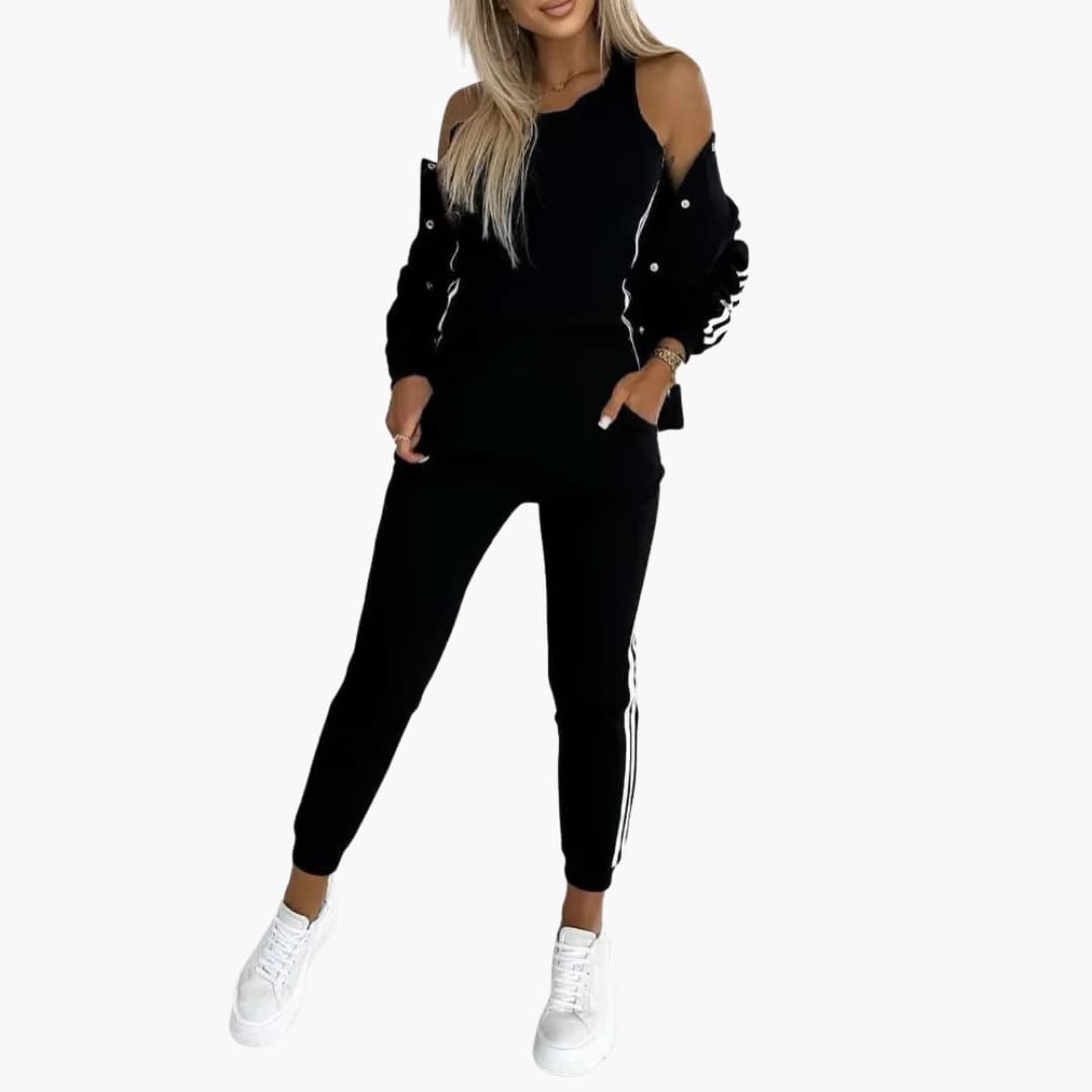 Women’s casual three-piece set with tank top, joggers, and jacket