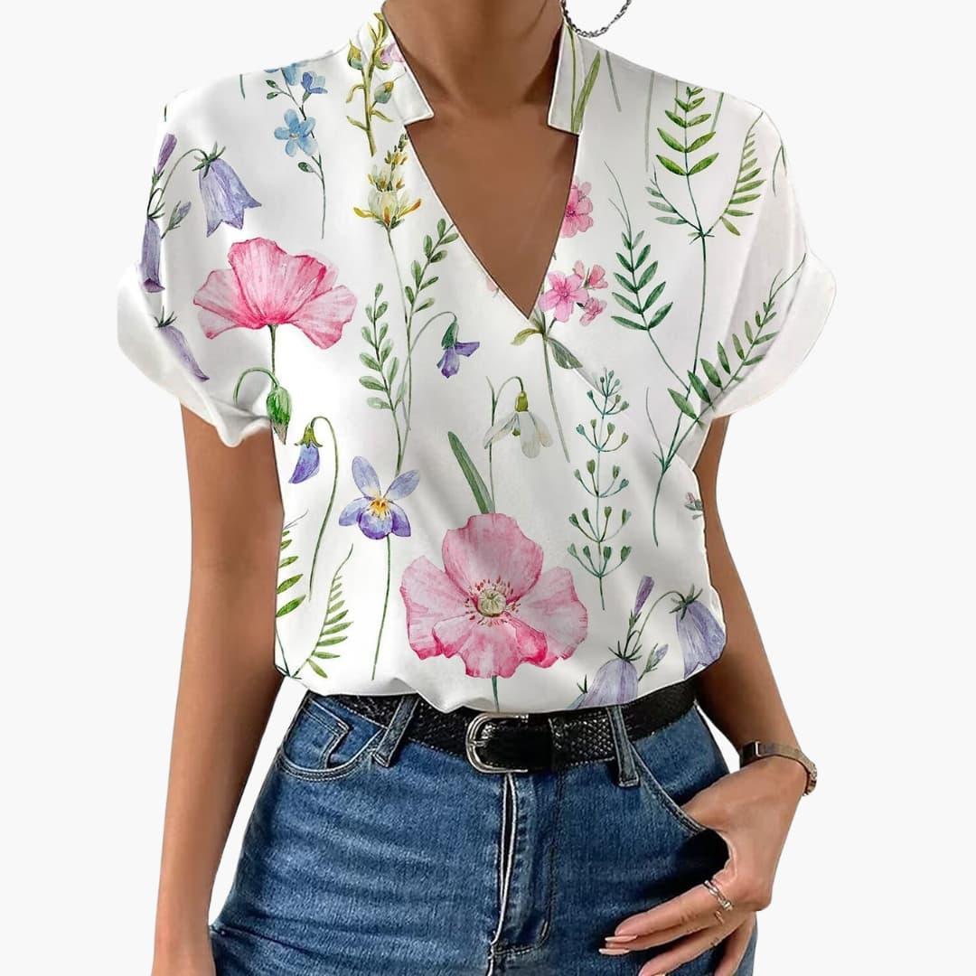 Women’s Blouse with V-Neck and Floral Print