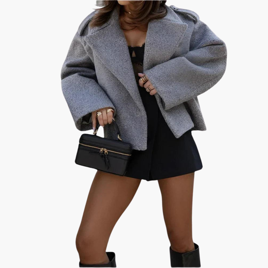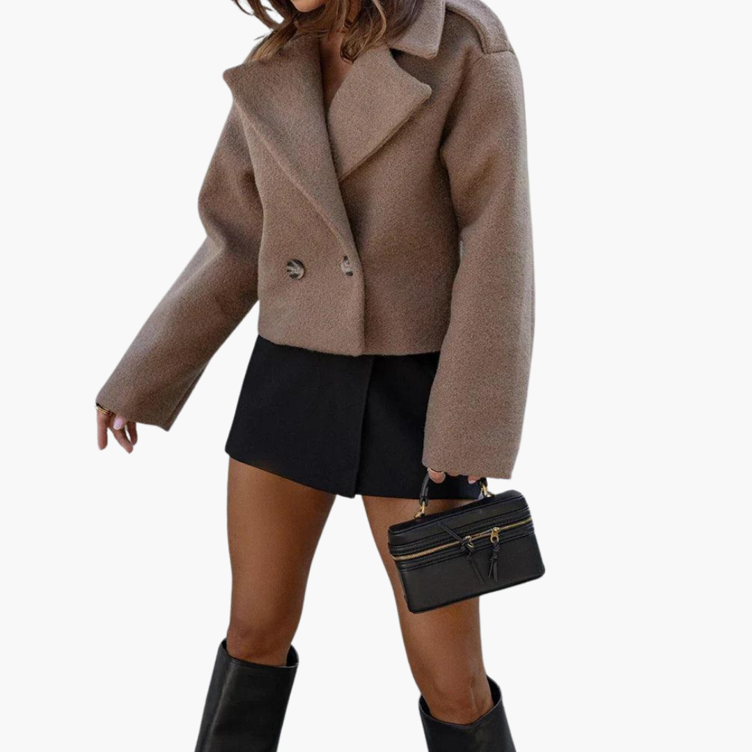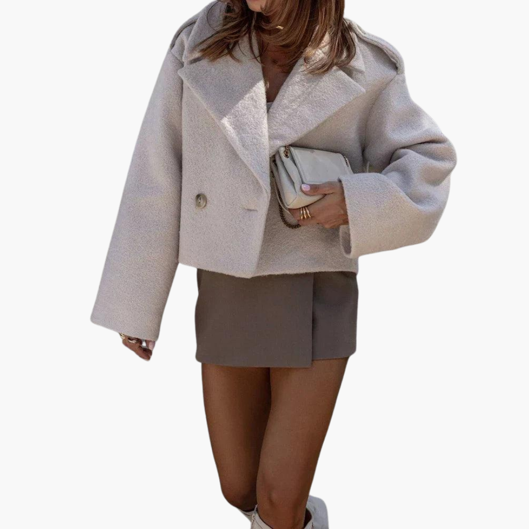 Women’s Cropped Jacket with Straight Hem and Long Sleeves