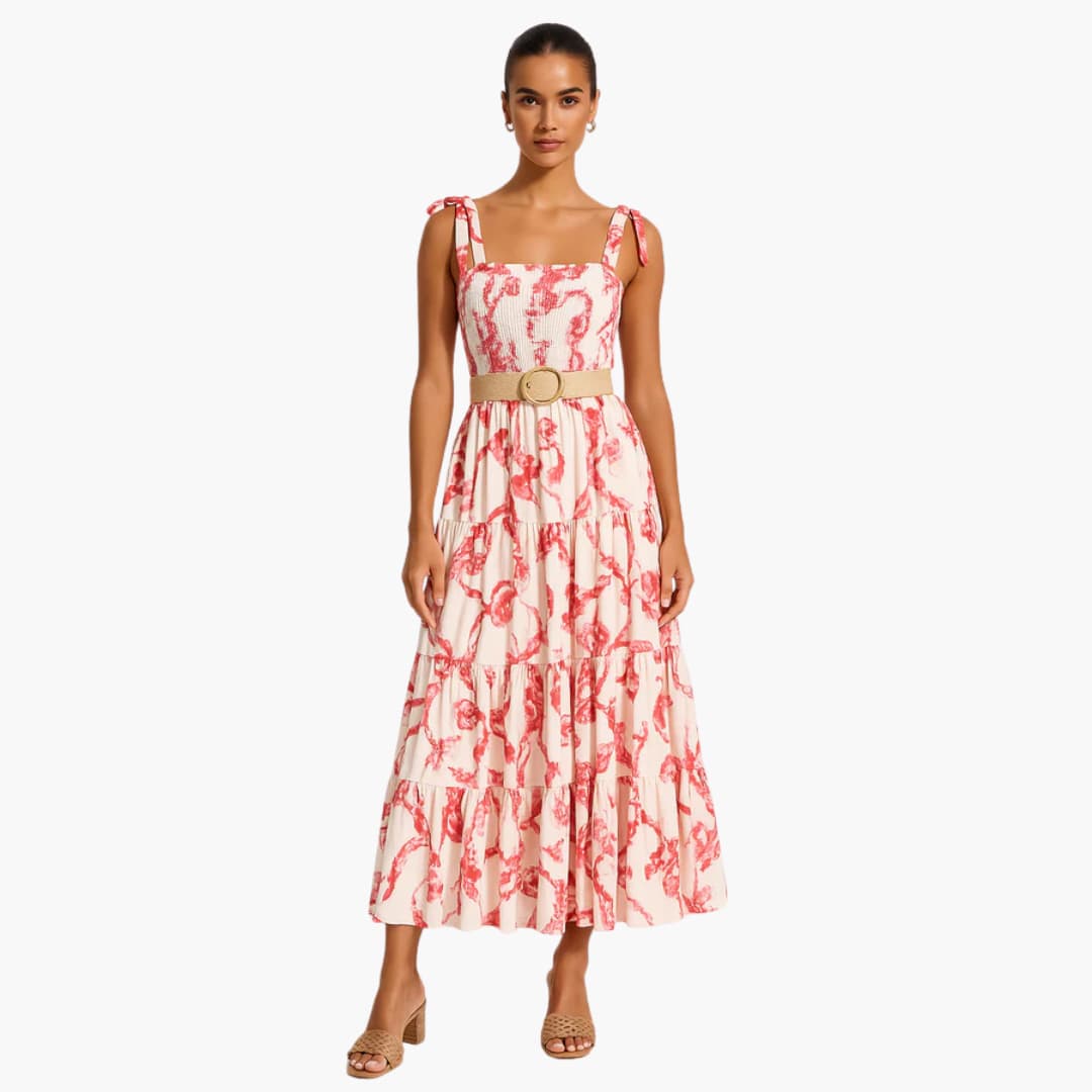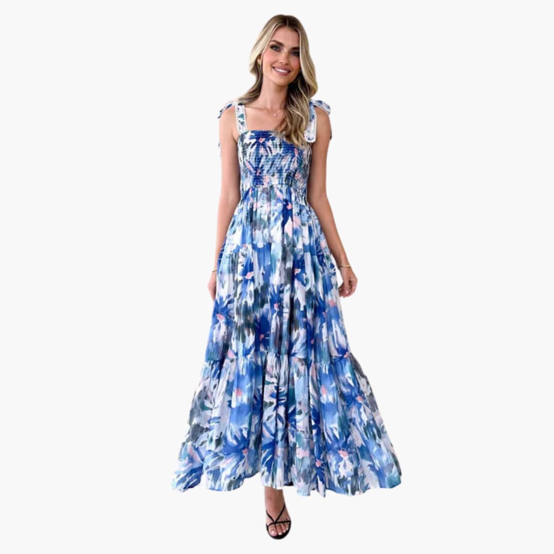 Women's Maxi Dress with Shirred Bodice and Tie Straps