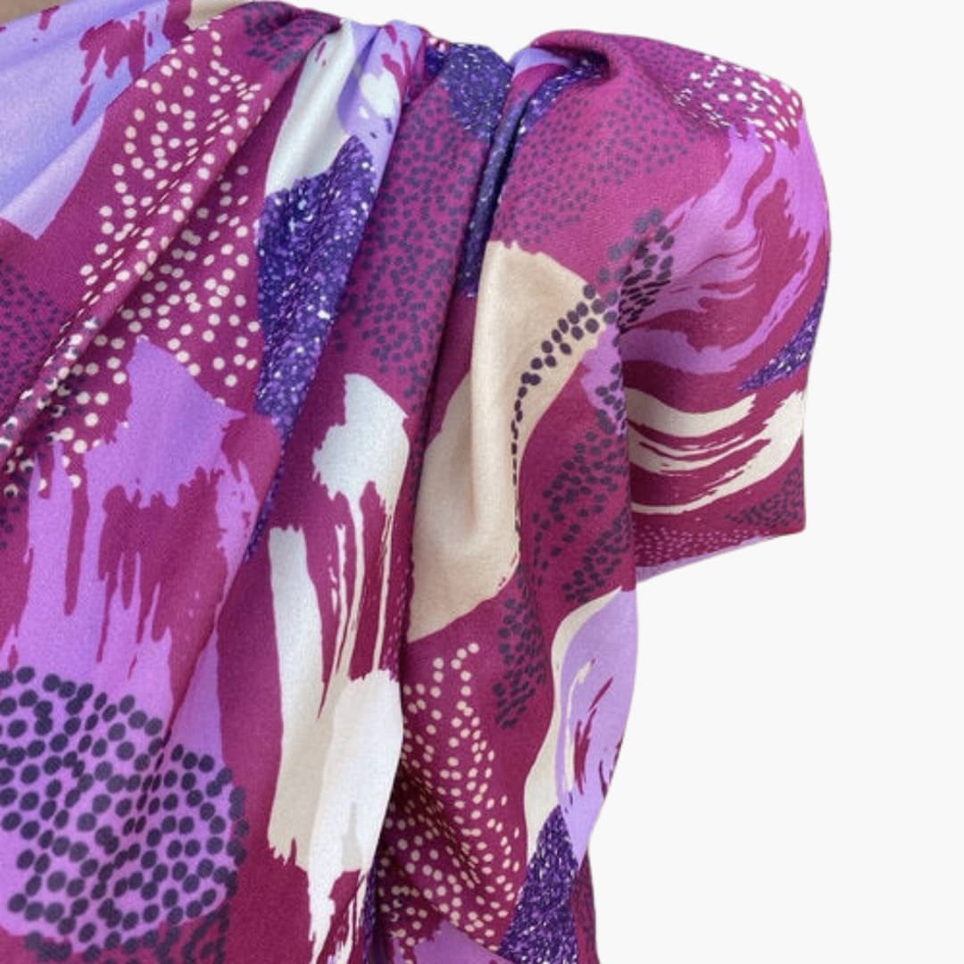 - Puff Sleeve Detail: Single voluminous sleeve adds structured definition at the shoulder area.
